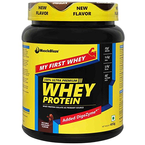 - MuscleBlaze My First Whey Trial Pack offers 25g protein in a 33g serving