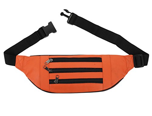 - **** FEATURES - 3 zipper pockets at front & 1 zipper pocket at back. Comes with an adjustable strap. To be worn around the waist.