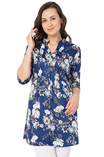 - Design : This Rayon Tunic come in White Floral design over blue base, Front button closure, belt included.
