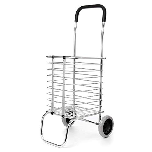 - Two Wheels Stainless Steel Basket Folding Portable Shopping Cart Trolley Trailer